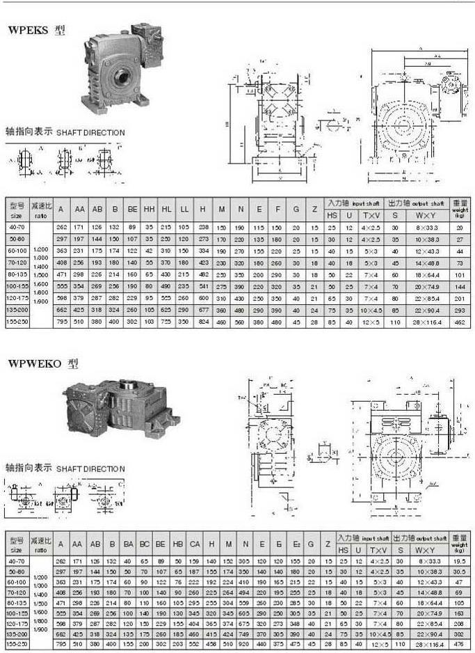 WPEKS,WPWEKO型型號(hào)參數(shù)圖表